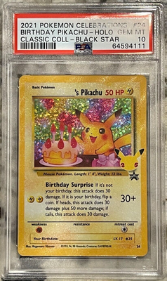 Pokemon Celebrations Classic Collection Pikachu Birthday Surprise HGA 95 PSA 10. Pokemon TCG Celebrations - Master Base Set - 24 Card Bundle 001025-024025. Pokemon BIRTHDAY PIKACHU MANA 10 24 CELEBRATIONS CLASSIC BGS PSA 10 - GEM MINT Pre-Owned C 8979 or Best Offer from United States Sponsored PSA 10 Birthday Pikachu.